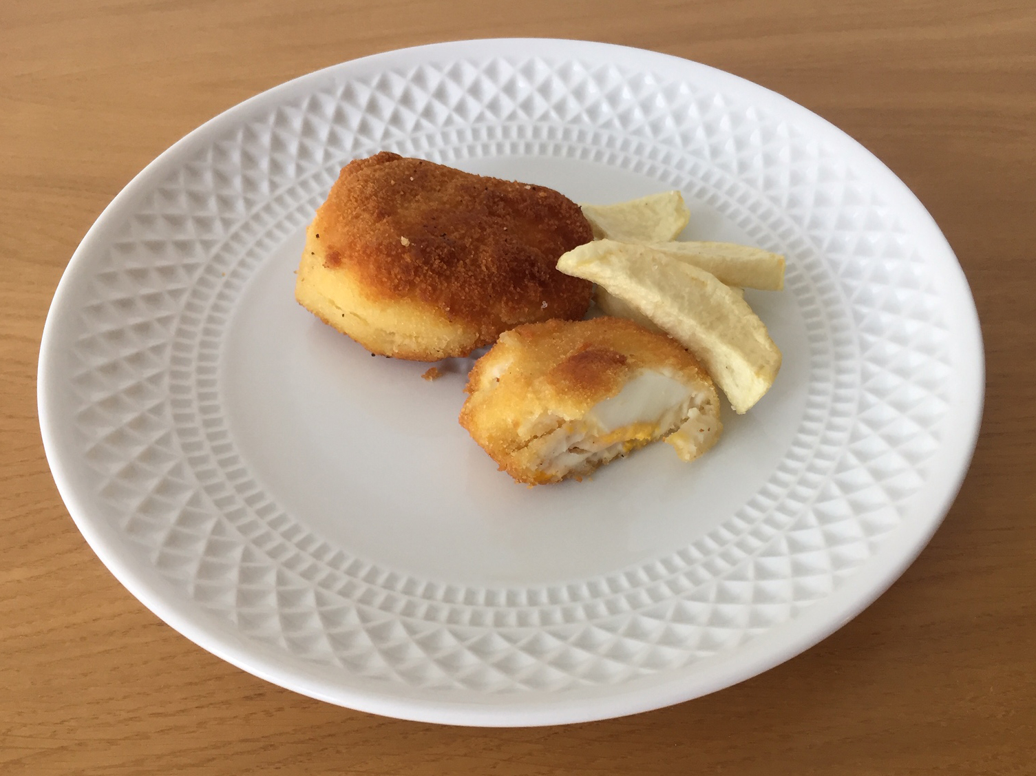 8. Cuando estén fríos y duros, lo empanamos con pan rallado, huevo y pan rallado otra vez.
