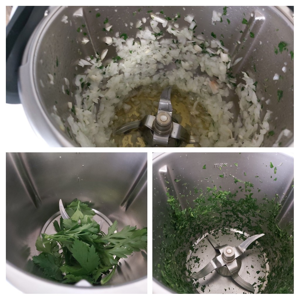 Continuamos con el picado del perejil en el 2° vaso, que tenemos limpio y seco. Pica el perejil, 5 seg/ vel 7. Reserva.