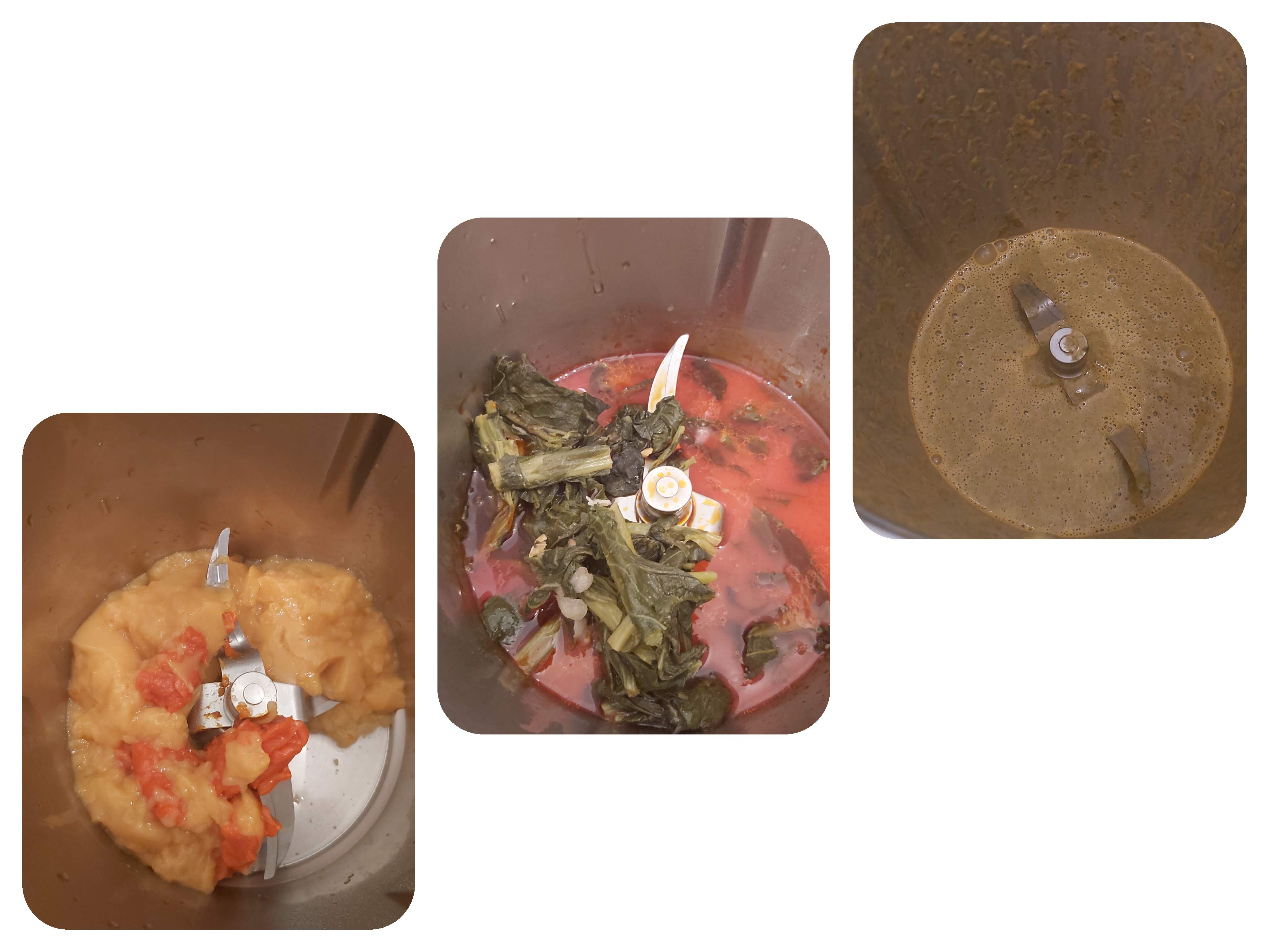 - Añade la leche, el caldo con los grelos reservado, la pimienta, la nuez moscada, la sal y el pimentón. Mezcla 20 seg/ vel 6.
