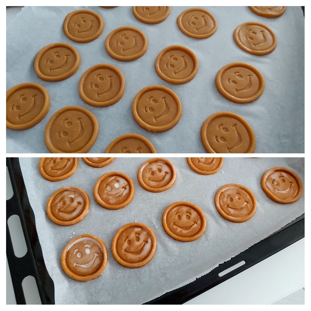 Estira la masa a 3 mm, corta con un corta pastas y pinta las galletas con leche y azúcar.
