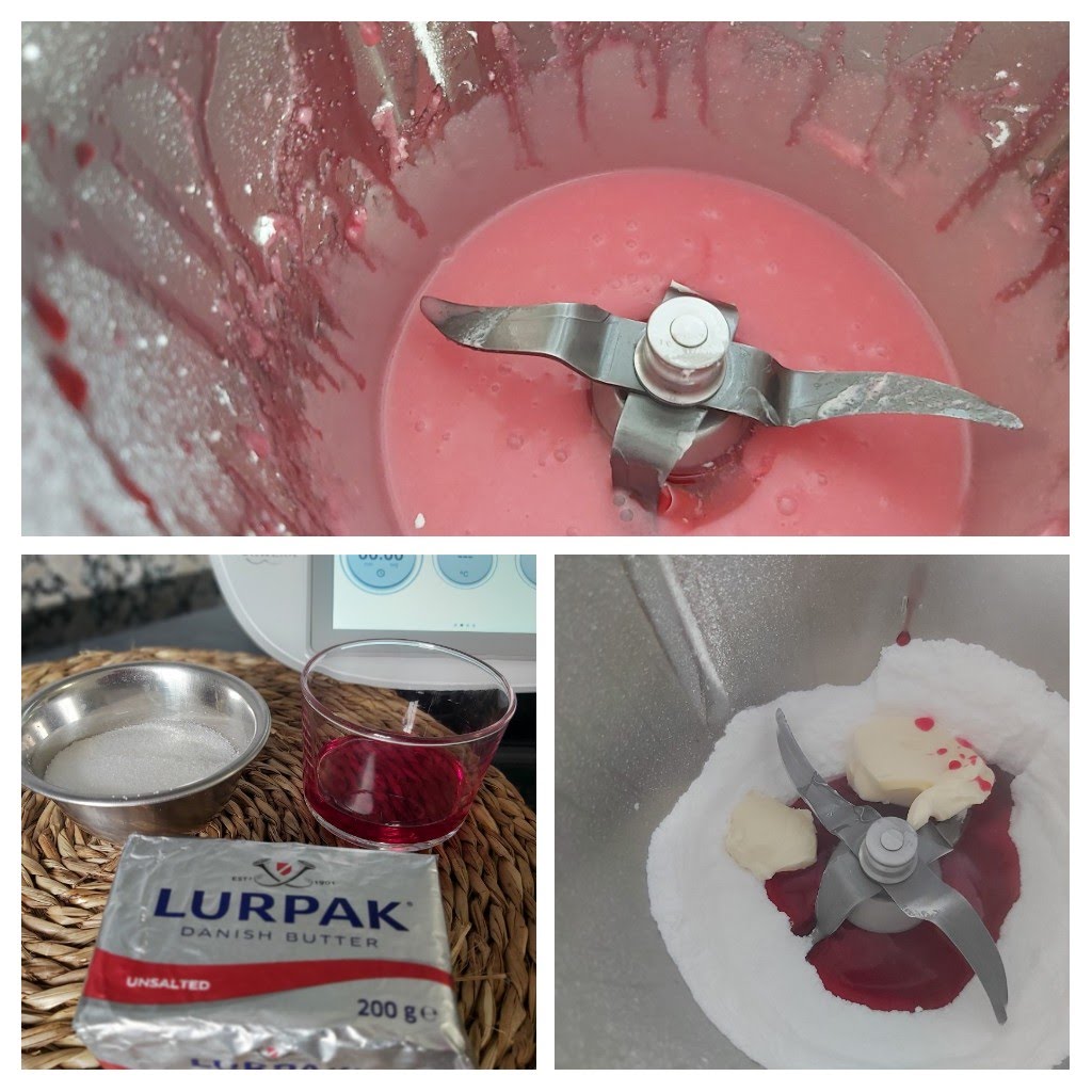 Podrás seguir en receta guiada en tu TM6 ó TM5 los primeros pasos de la receta, ya que el relleno lo he seguido al pie de la letra. Para hacer el exterior del cake, me he decantado por uno de los bizcochos que más gusta en mi casa, cambiando un poco las cantidades "Bizcocho de chocolate y remolacha" .
