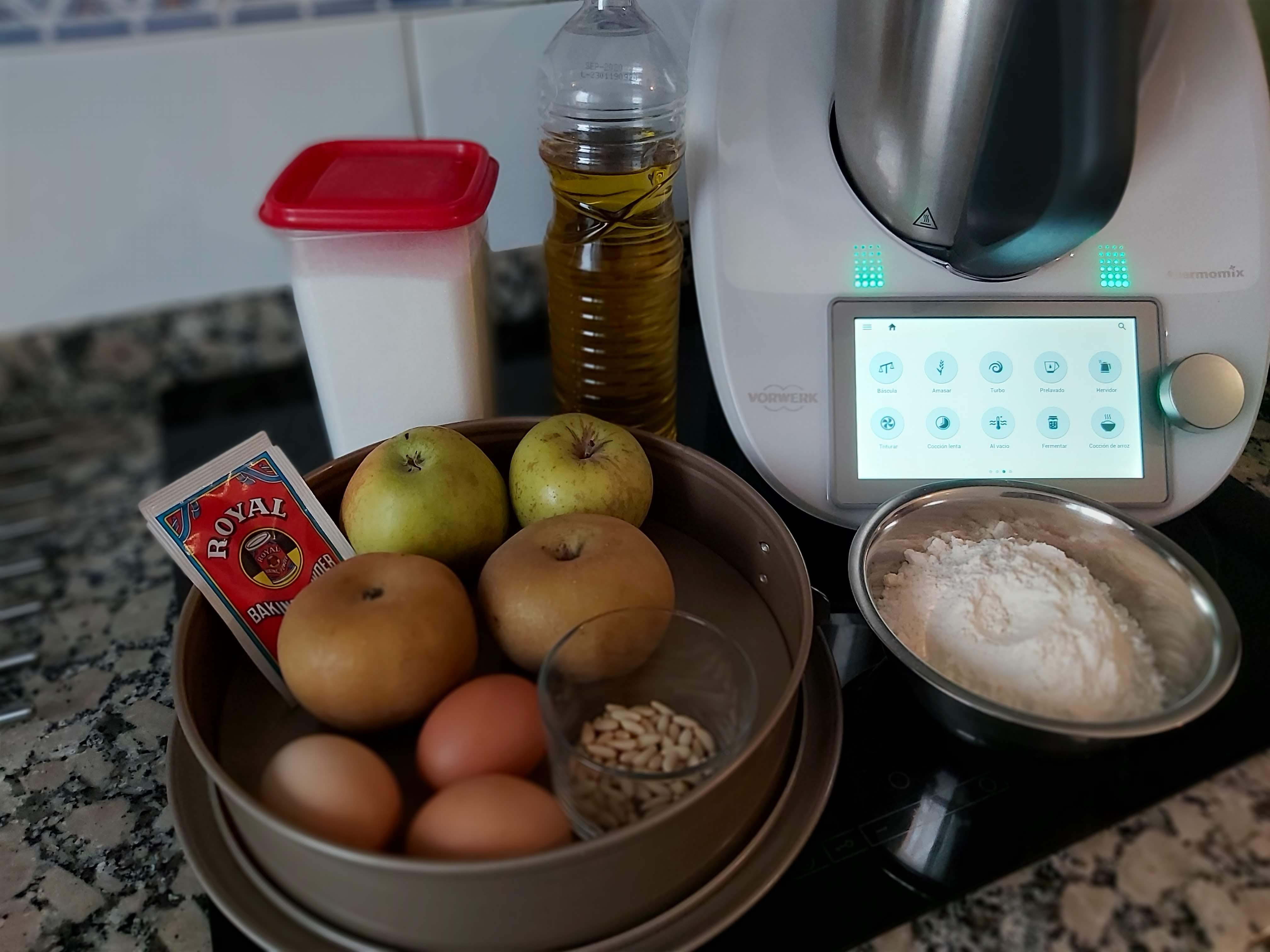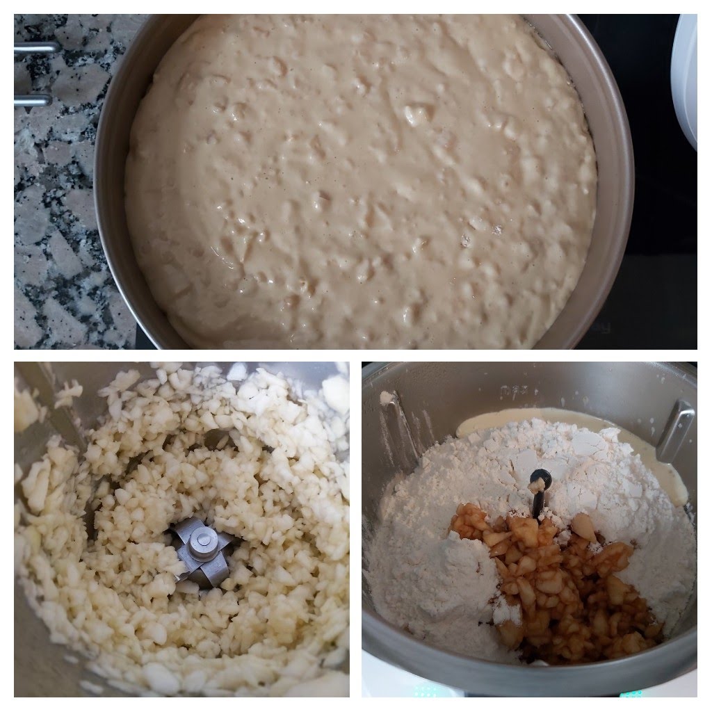 - Echa la harina, la levadura y las manzanas troceadas y mezcla 20 seg/ vel 3