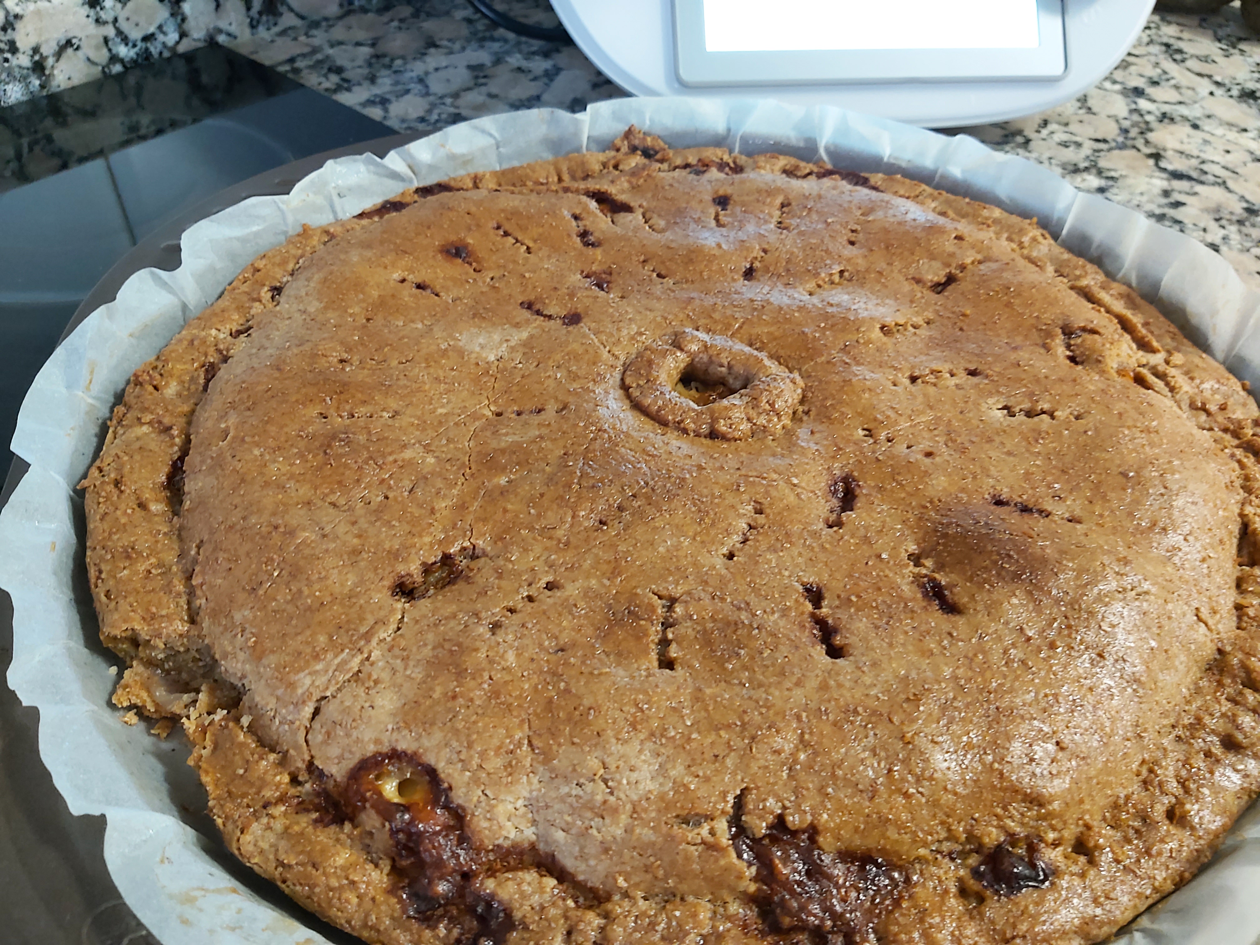 Esta vez ni es de maíz ni con relleno de mar, pero sí de harina integral de trigo molida en molino ( lleva por lo tanto todos los componentes del grano y la proporción de gluten es muchísimo menor que en las harinas blancas) y con un relleno muy gallego, espero que os guste.