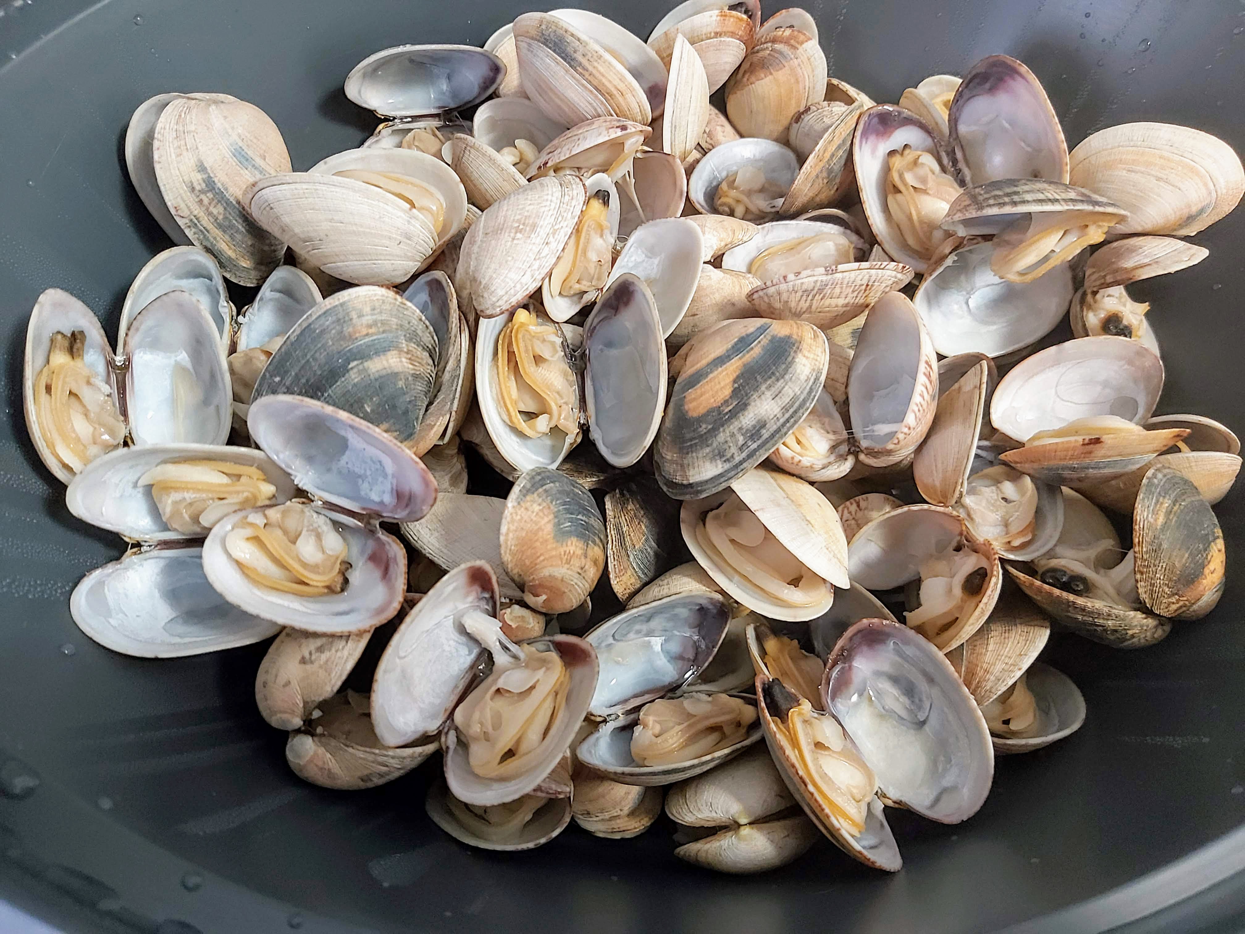 Pon las almejas a remojo en agua fría con una cucharada de sal durante un par de horas para que suelten la arena.