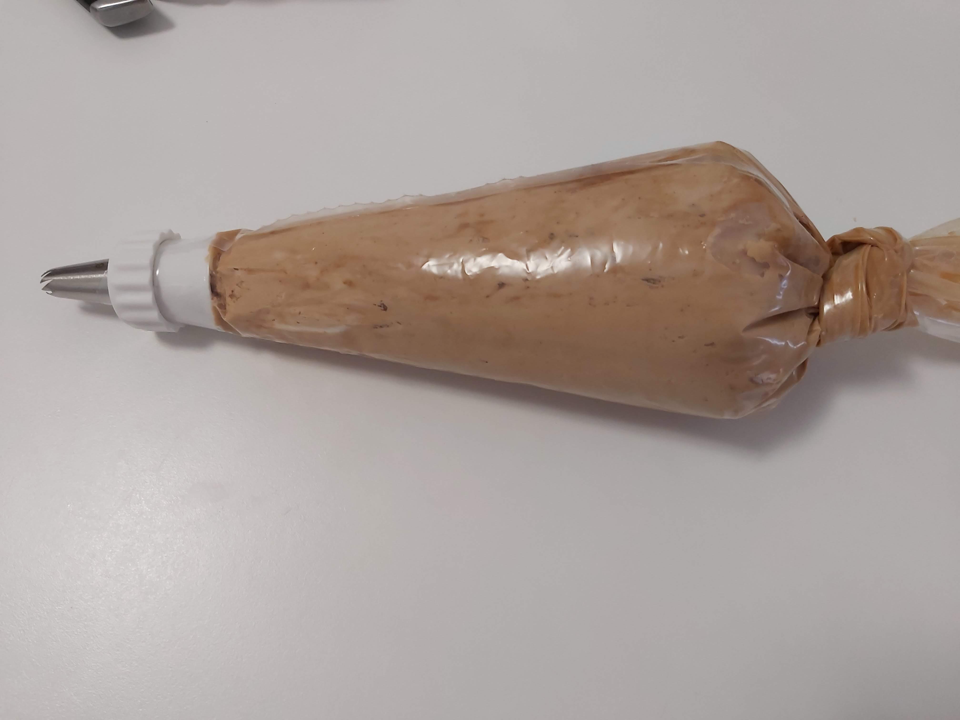 2. Añade el queso mascarpone y mezcla 10 seg/vel 4. Vierte en una manga pastelera con boquilla rizada y reserva en el frigorífico