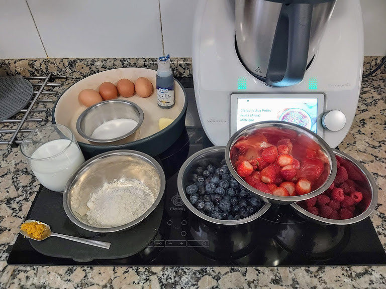 Si tenéis TM5 ó TM6 podréis hacerla de forma guiada con la pataforma de recetas cookidoo, tan sólo tenéis que seleccionar "Francia" en los filtros y poner en el buscador "clafoutis"