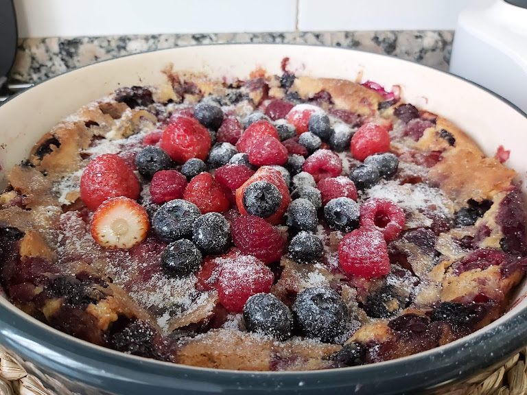 Empiezo el otoño con una tarta típica de Francia muy sencilla de hacer y que os va a encantar. En Francia suelen hacerla de cerezas y además con hueso, pero vamos a cuidar nuestra dentadura y la haremos con frutos rojos ja!ja!ja!