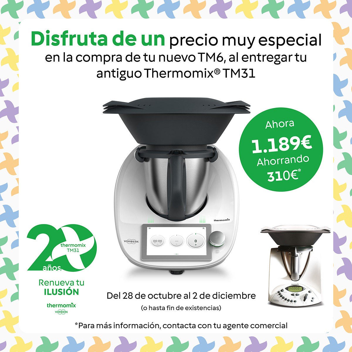 Además, recuerda, a partir de 2025 la fabricación de repuestos y accesorios y las posibles reparaciones del Thermomix® TM31 finalizarán. Ahora es el mejor momento de formar parte de la revolución de la cocina con el modelo TM6.